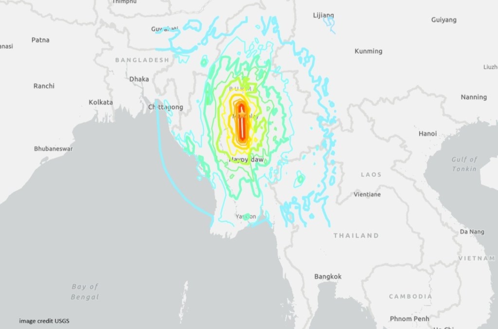 A massive 7.7 magnitude earthquake hit SE Asia today around 1:30 PM local time. The epicenter was in nearby Myanmar, but it was felt at least as far away as Bangkok. One building that looked like it was under construction in Bangkok collapsed. Water from rooftop swimming pools was said to have splashed on the streets below during the shaking. Enough chaos has ensued that Thailand’s Prime Minister, Paetongtarn Shinawatra, has declared a state of emergency in Bangkok. What we know of the building collapse is that one person was killed and 43 are missing. The skytrain services going through Bangkok are also temporarily suspended while everything is inspected. However, Suvarnabhumi Airport in Bangkok remains open. Inspections of the airport found no damage and air traffic remains uninterrupted.